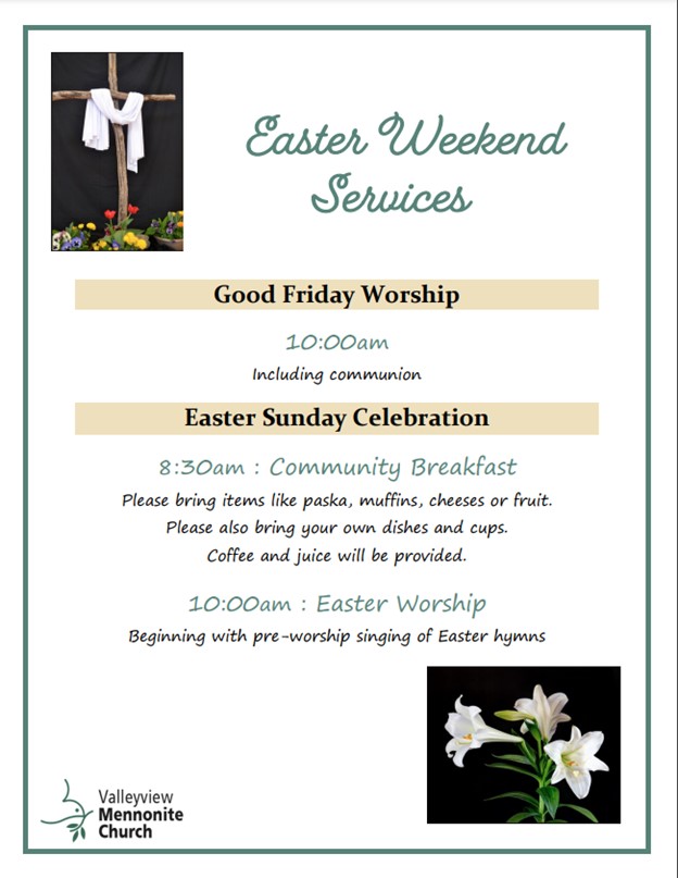 Easter Weekend Services at Valleyview